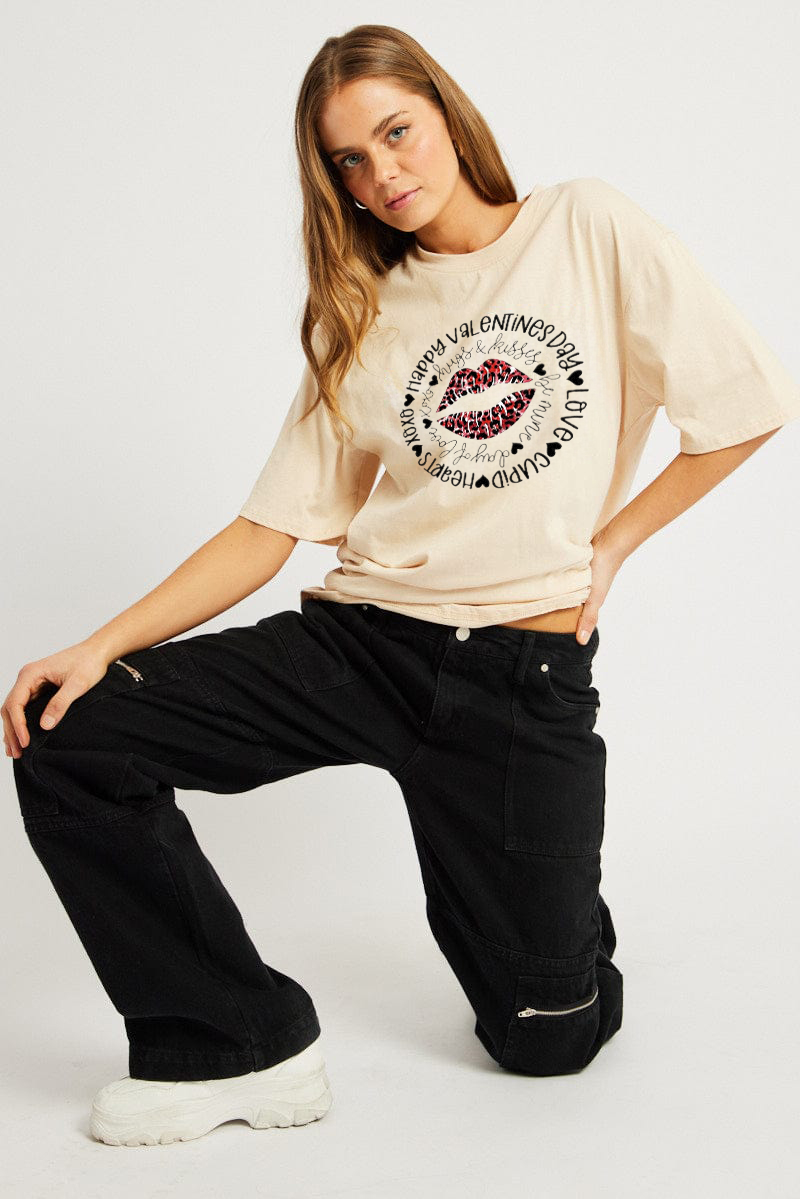 Women's Lipprint Love Letter Printed T-shirt