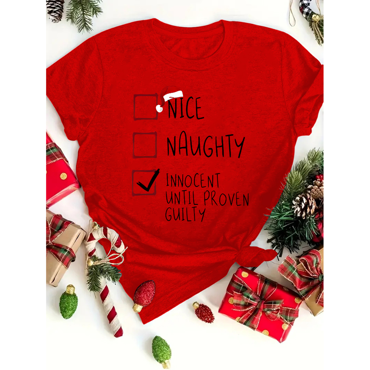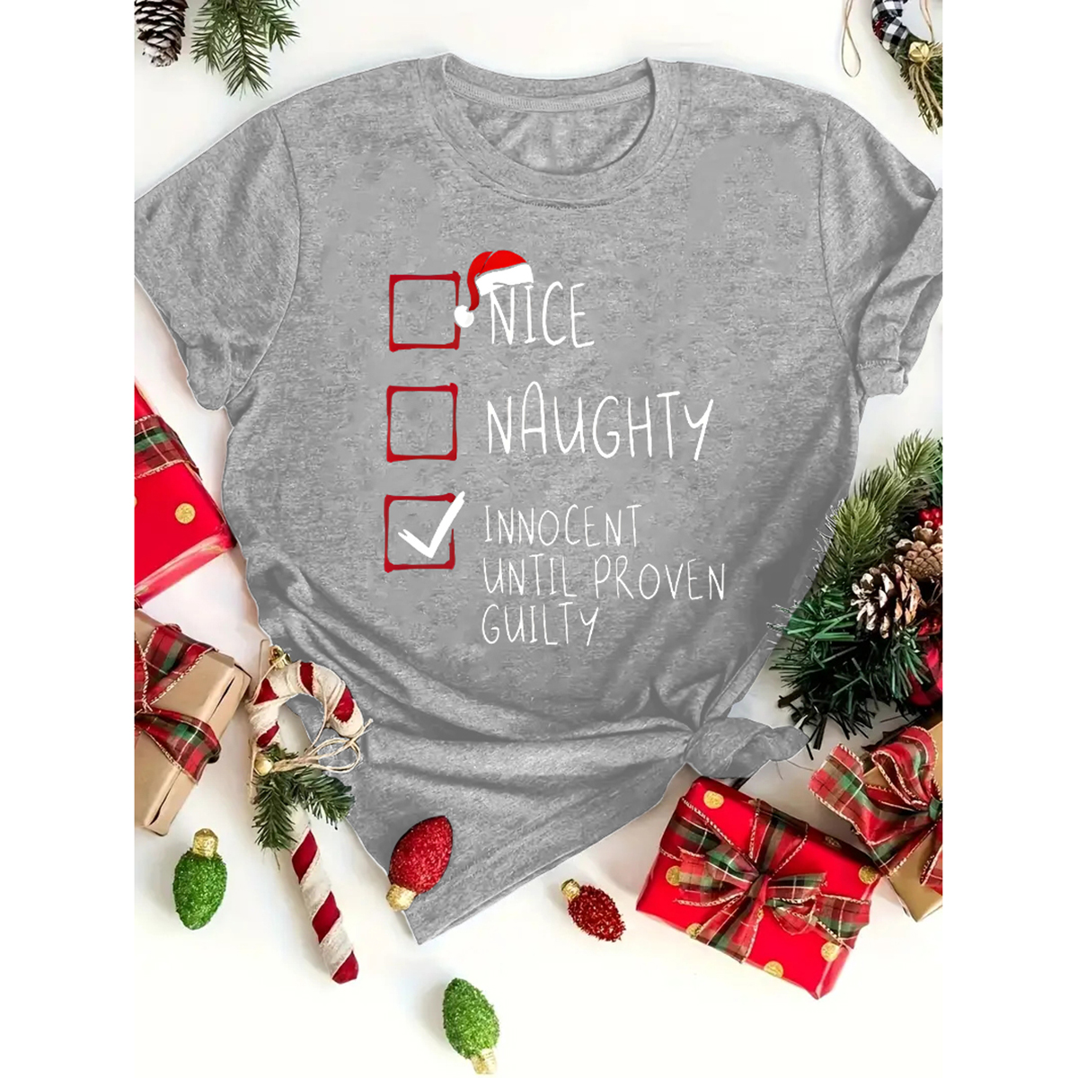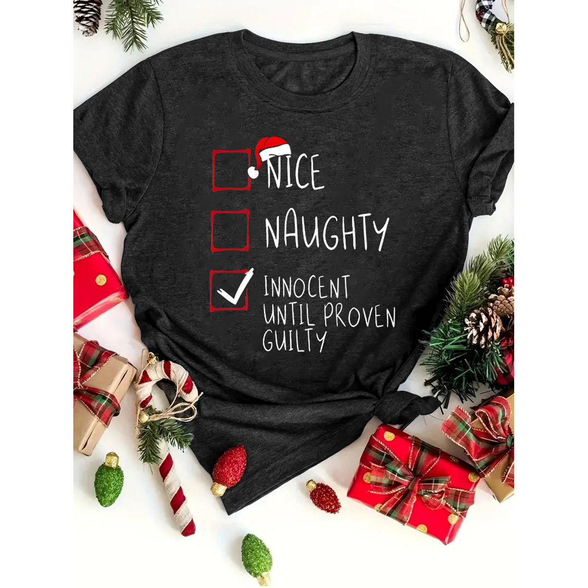 Womens Christmas Graphic Tee - Crew Neck, Micro Elasticity, Polyester, Semi-Sheer, Positioning Printing, Casual Short Sleeve Top for All Seasons