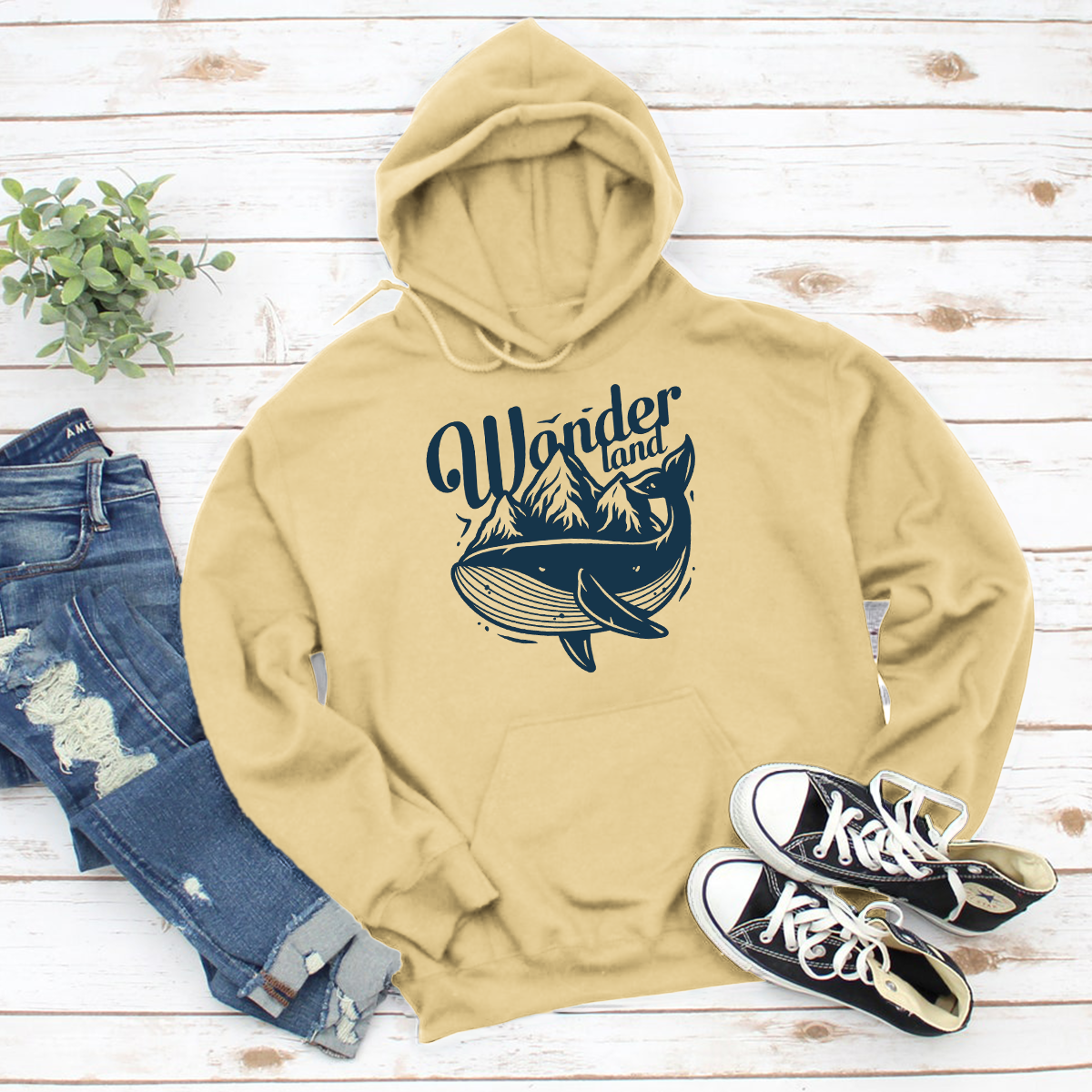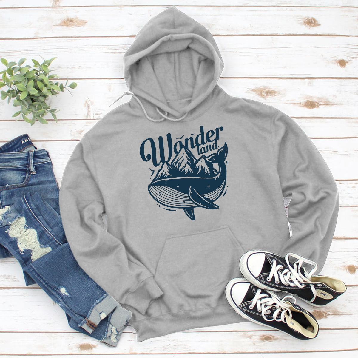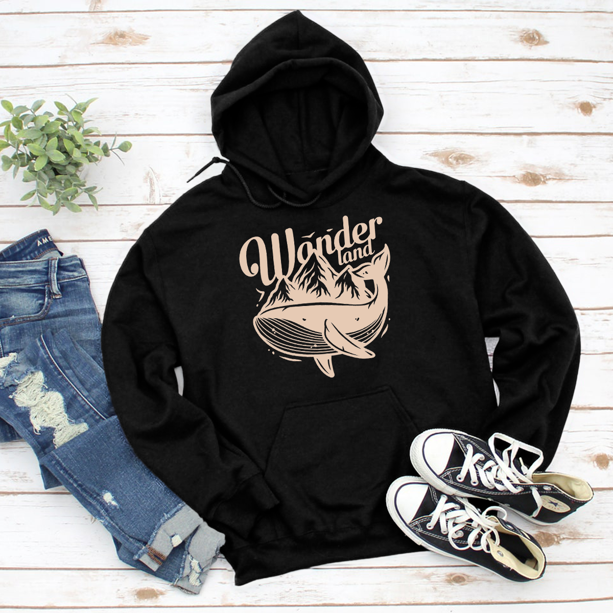 Wonder Land whale Printed Hoodie
