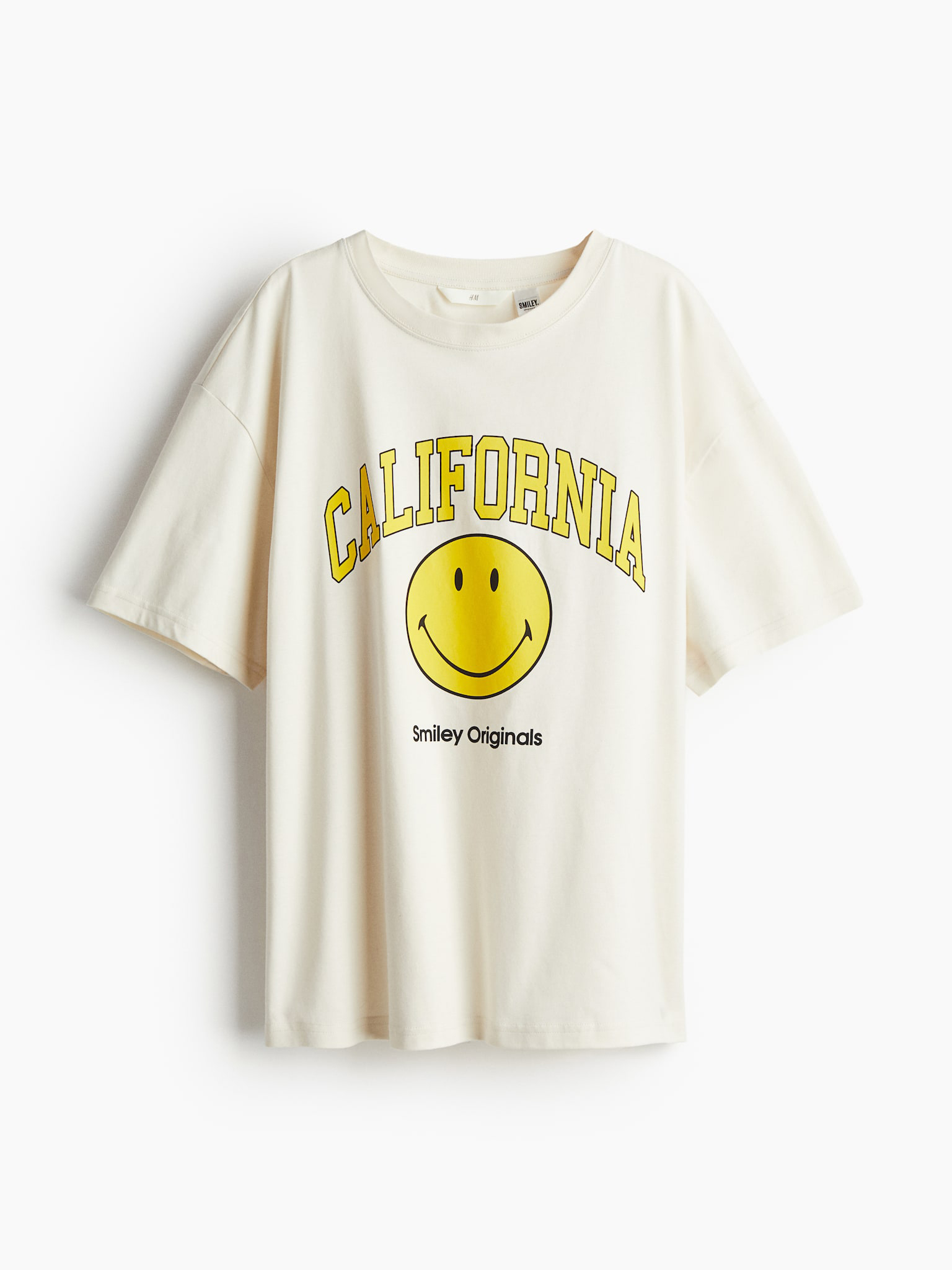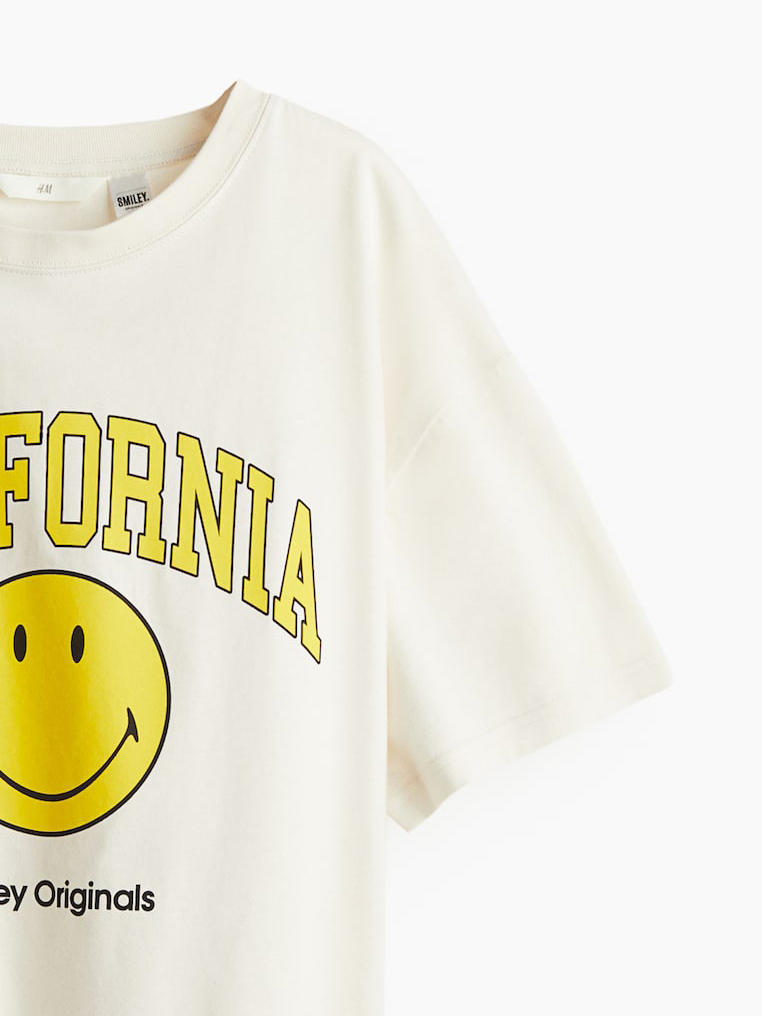Yellow Smiley Face Print Short Sleeve T-Shirt